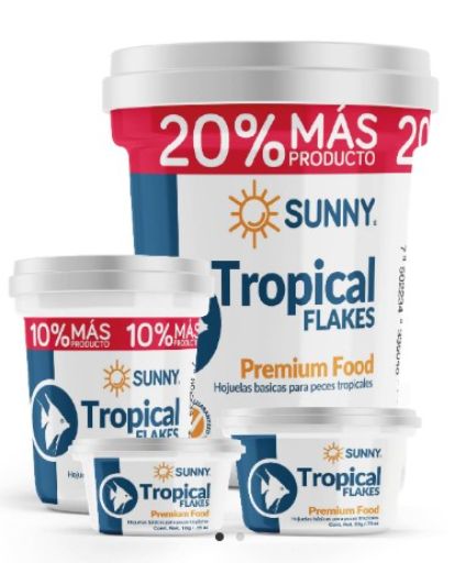 ALIMENTO SUNNY IMPORTADO HOJUELAS BASICAS TROPICALES 100G (BY TROPICAL) (PROMOCION 20% EXTRA)