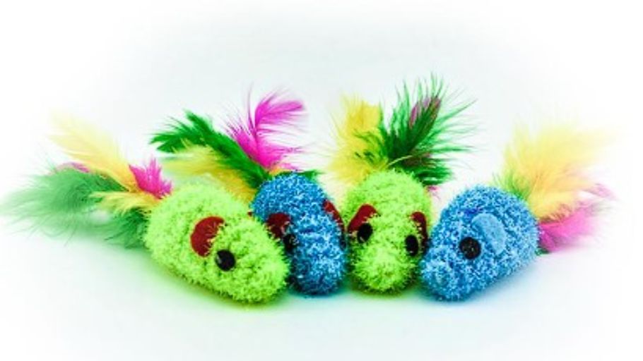 JUGUETE PARA GATOS PAWFFY RATON DE TELA CON SOGA Y PLUMAS SUNNY